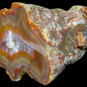 Dryhead Agate is renowned for its rich and varied color palette, which includes shades of red, orange, yellow, white, and sometimes even green and blue. These colors are often vivid and can appear in layers, bands, or swirls that create eye-catching patterns. The diversity in coloration is due to the presence of various trace elements during the agate’s formation, such as iron, manganese, or chromium, which contribute to the different hues. Patterns can range from solid, uniform colors to intricate bands, which can be wavy, circular, or form concentric layers, often resembling the rings of a tree trunk.